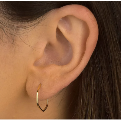 Earring hexagon ring 15mm 18k gold pair yellow color aqua jewelry