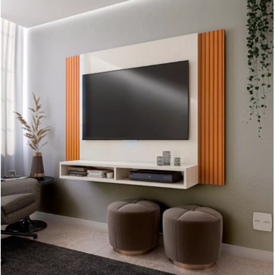 It has MDP material with high quality UV painting, has 2 niches and 1 25mm top to place decorative or electronic objects.