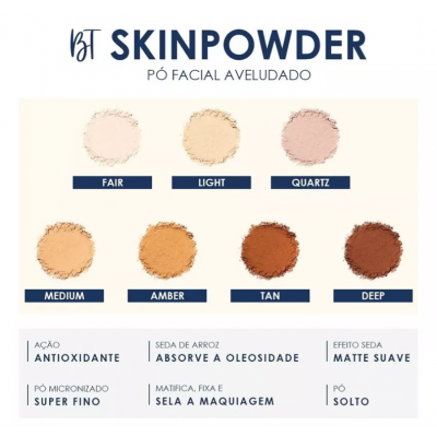 BT Skinpowder is enriched with Rice Silk, a rice silk that absorbs oiliness in the measure without being too dry on the skin. This silk ensures a hydrated and velvety touch, making it easier to get the skin better with the skin, making it super soft and smooth.