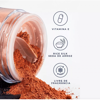 Our dust also has the antioxidant action thanks to vitamin E present in the formula. With velvety finish, it mats, fixes and seals the makeup of the face without leaving the skin heavy.