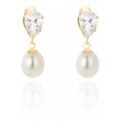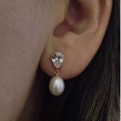 Biwa 7mm natural pearl earrings and 18k gold jewelry zirconias