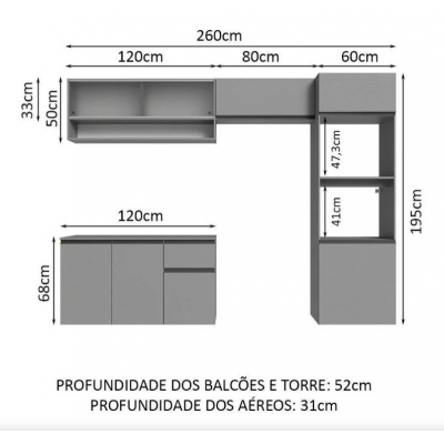 Complete Kitchen Cabinet Suspended 260cm Gray Nice Madesa 11