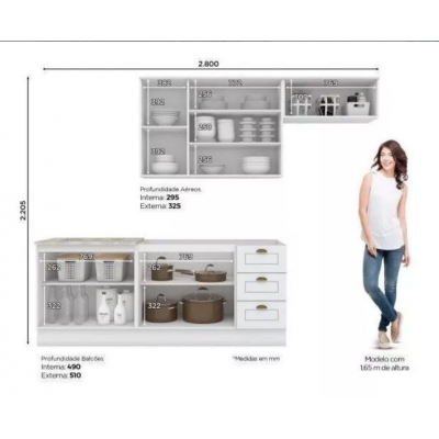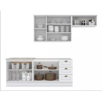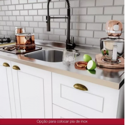 Compact American Kitchen 4 Pieces, a new concept inspired by classic American style kitchens, its contemporary design beautifies any environment. Designed to provide practicality and functionality to use. Product 100% MDF, offers several module options that enable several linear compositions, has low -relief machined details on the doors and drawers, puckers in shell -shaped and air -shaped counters, both in old gold, has 35mm damping, 830mm of heights, telescopic drawers providing larger. opening. Its installation can be done either with the use of the baseboards or suspended.