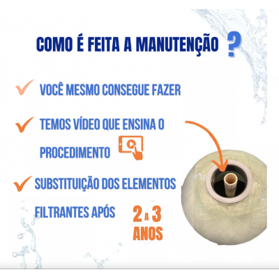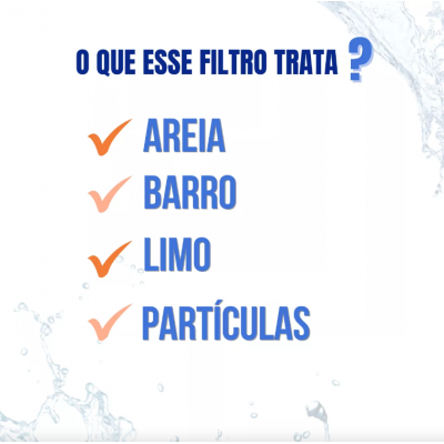 Ideal for concessionaire water treatment, it retains particles such as sand, clay, slime, providing sediment -free water at all points of consumption of the house. Filter consists of 6 layers of quartz, ideal for water treatment.
