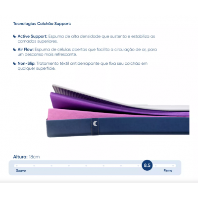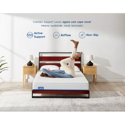 The Luuna Support mattress in the size couple has measurements of 138x188 cm and 18 cm high. With a firmness of 4/5, it consists of two layers of high technology foam: the D28 support foam, at the base, and the Comfy D29 thermal foam, in the upper layer. The combination of these foams provides an ideal balance between firm support and smooth comfort, adapting perfectly to the outline of the body without sinking.