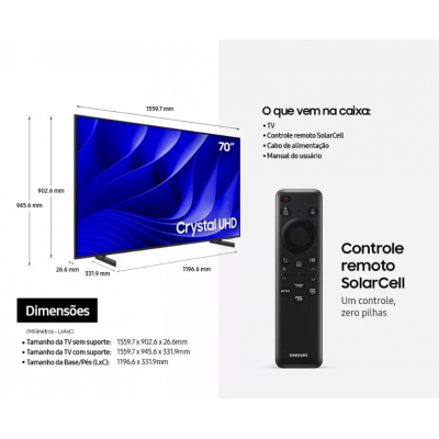 Smart TV 70 '' Crystal UHD 4K 70DU8000 2024 Samsung 110V/220V